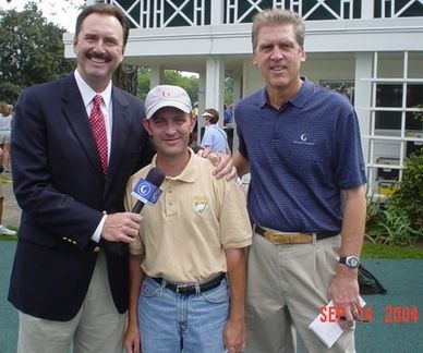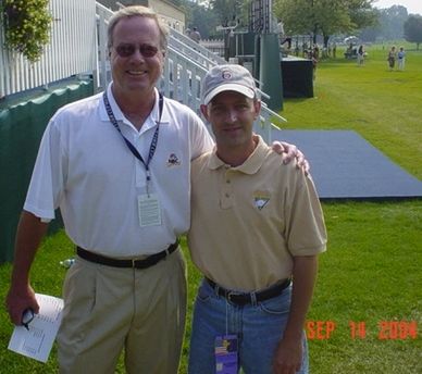 Brian Hammons & Brian Hewitt, former on-air personalities from Golf Channel, about to interview me at Oakland Hills during the 2004 Ryder Cup.