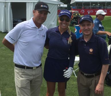 Long-time friend, Jerry Foltz, formerly from the Golf Channel / NBC Sports (now commentator for the LIV Invitational Series), with LPGA Tour player Natalie Gulbis, and I, at the 2015 LPGA Tour's Meijer Classic.